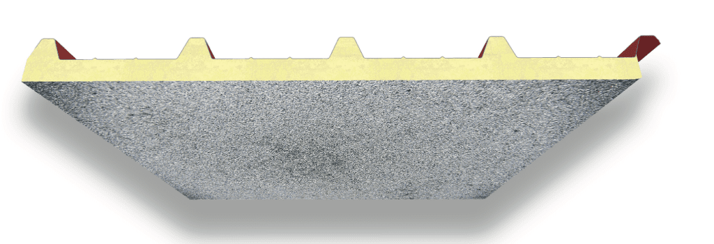 A PUR vagy PIR töltetű, 3 vagy 5 merevítő bordával rendelkező hőszigetelő tetőpanel.