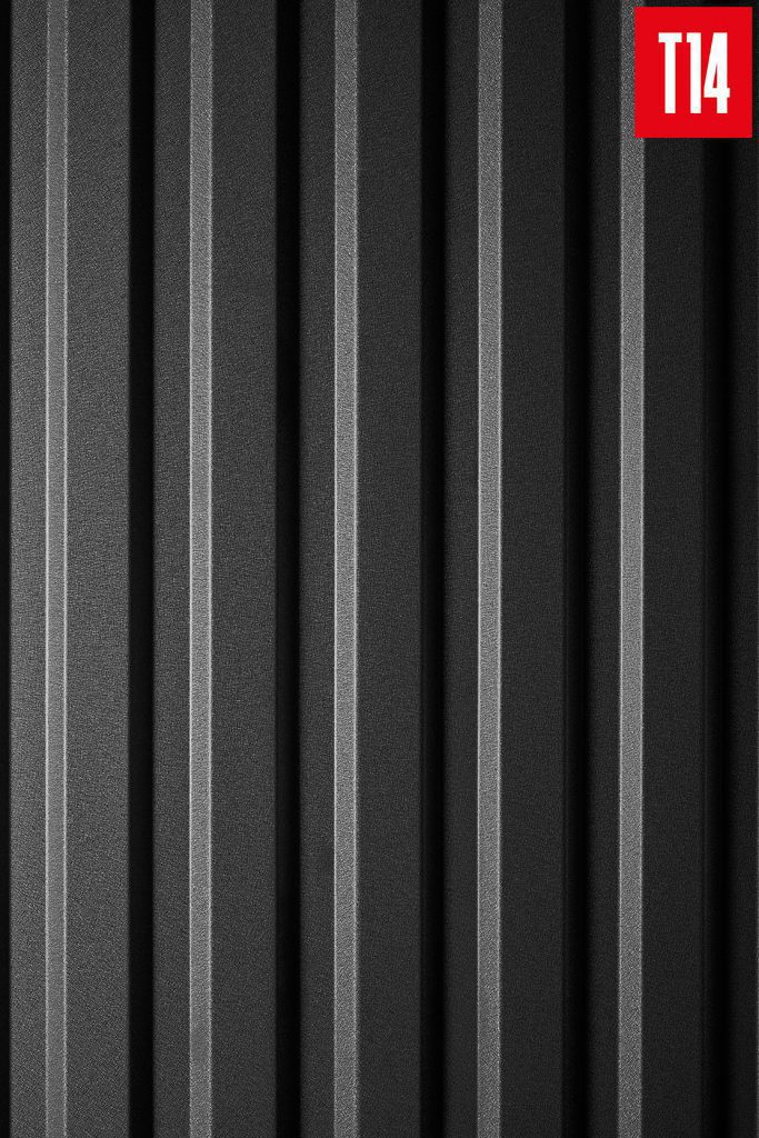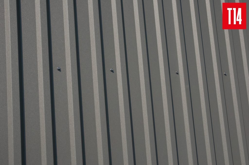 A T14-es trapézlemezt, akár csak a T7-es lemezt, főként homlokzatok, mennyezetek és ereszaljak burkolására használják.