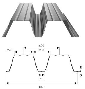 Tetőkön és a homlokzatokon egyaránt használható. Gazdaságos profil, köszönhetően nyújtott mintájának, merevítő bordáinak és kiváló hasznos szélességgének.